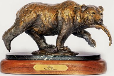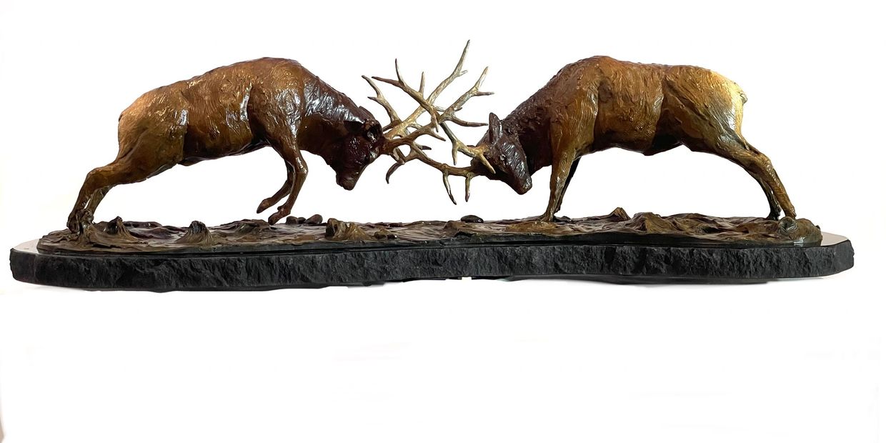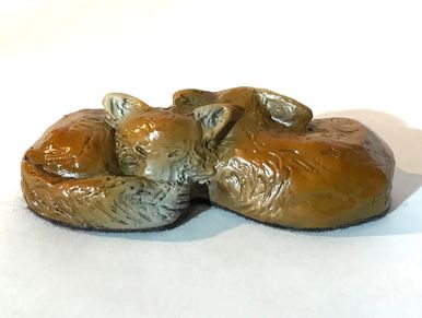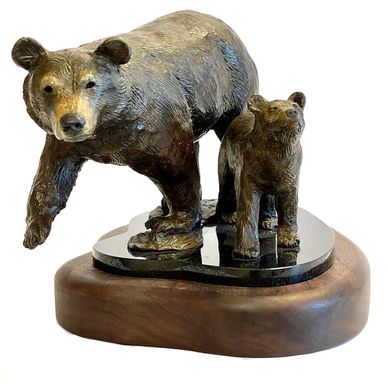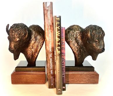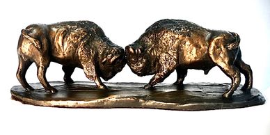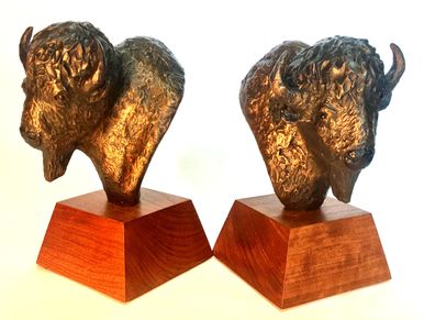 Cow and calf bison. 3.5" x 1.5" and the foundry (Bronze Services, Loveland, CO) did a great job on the patina. The calf is an orange color when born.