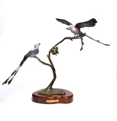 The scissortail flycatcher is the Oklahoma State bird. This songbird is characterized by tails that can be twice their body length. Available in traditional or colored patiina.